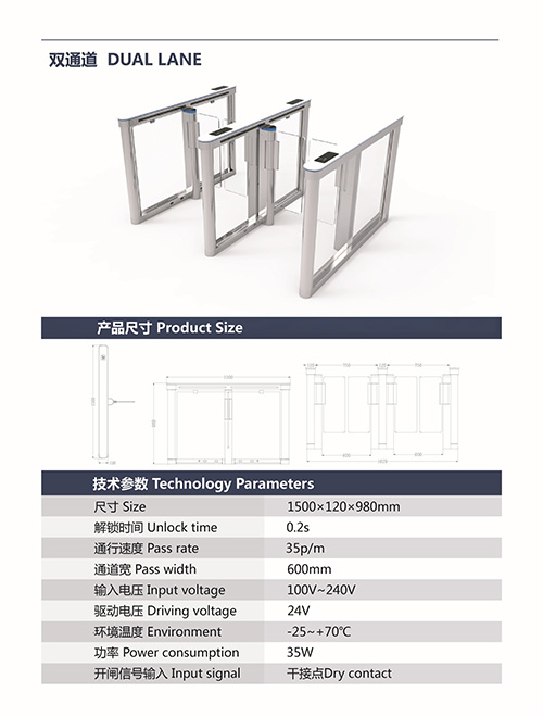 1.速通門B307系統(tǒng)具備防撞功能,當(dāng)有外物在未授權(quán)的狀態(tài)下撞擊擺桿,擺桿運(yùn)動(dòng)角度達(dá)到菜單設(shè)定的值(如 2°),控制器_會(huì)啟動(dòng)剎車機(jī)構(gòu),阻止擺桿運(yùn)動(dòng),并啟動(dòng)聲光報(bào)警。當(dāng)外力進(jìn)一步增大,剎車控制器會(huì)保護(hù)擺桿不被撞斷,外力撤除后,擺桿自動(dòng)歸位,系統(tǒng)正常; 2.速通門B307統(tǒng)具備角度分辨和零位自檢功能,包含 500P/R 編碼器,分辨精度高,這種高精度的傳感器的優(yōu)勢(shì)是使擺桿轉(zhuǎn)動(dòng)_; 3.非法進(jìn)入有報(bào)警提示功能; 4.防沖功能,在沒有接收功能開閘信號(hào),擺臂自動(dòng)鎖死; 5.紅外防夾功能,在擺臂復(fù)位的過程中紅外檢測(cè)到人在通道中,擺臂會(huì)自動(dòng)回到打開狀態(tài); 6.統(tǒng)一標(biāo)準(zhǔn)的對(duì)外電氣接口,可與多種讀卡器相掛接,并可通過管理計(jì)算機(jī)實(shí)現(xiàn)遠(yuǎn)程控制與管理; 7.速通門B307系統(tǒng)設(shè)有過流保護(hù)裝置,當(dāng)負(fù)載_過某設(shè)定值(如 2._),系統(tǒng)停止工作,以免燒壞電機(jī)等設(shè)備;