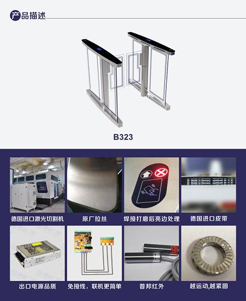 1.速通門B323A系統(tǒng)具備防撞功能,當(dāng)有外物在未授權(quán)的狀態(tài)下撞擊擺桿,擺桿運(yùn)動(dòng)角度達(dá)到菜單設(shè)定的值(如 2°),控制器_會(huì)啟動(dòng)剎車機(jī)構(gòu),阻止擺桿運(yùn)動(dòng),并啟動(dòng)聲光報(bào)警。當(dāng)外力進(jìn)一步增大,剎車控制器會(huì)保護(hù)擺桿不被撞斷,外力撤除后,擺桿自動(dòng)歸位,系統(tǒng)正常; 2.速通門B323A系統(tǒng)具備角度分辨和零位自檢功能,包含 500P/R 編碼器,分辨精度高,這種高精度的傳感器的優(yōu)勢(shì)是使擺桿轉(zhuǎn)動(dòng)_; 3.非法進(jìn)入有報(bào)警提示功能; 4.防沖功能,在沒(méi)有接收功能開(kāi)閘信號(hào),擺臂自動(dòng)鎖死; 5.紅外防夾功能,在擺臂復(fù)位的過(guò)程中紅外檢測(cè)到人在通道中,擺臂會(huì)自動(dòng)回到打開(kāi)狀態(tài); 6.速通門B323A統(tǒng)一標(biāo)準(zhǔn)的對(duì)外電氣接口,可與多種讀卡器相掛接,并可通過(guò)管理計(jì)算機(jī)實(shí)現(xiàn)遠(yuǎn)程控制與管理; 7.系統(tǒng)設(shè)有過(guò)流保護(hù)裝置,當(dāng)負(fù)載_過(guò)某設(shè)定值(如 2._),系統(tǒng)停止工作,以免燒壞電機(jī)等設(shè)備;